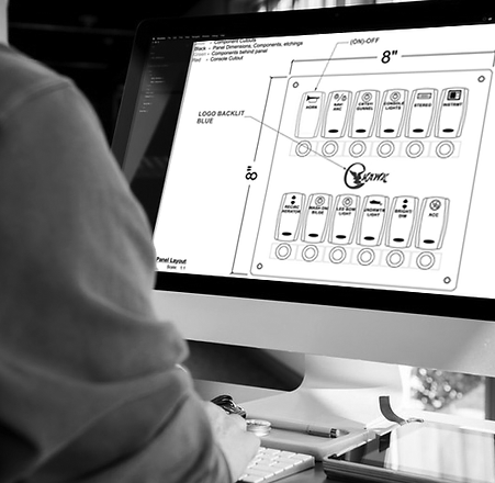 Our first step in the design process is to look at the aesthetics, determine the application, and select materials that will drive the look and feel of their finished panel. We offer a wide variety of precision machined UV resistant ABS material and stainless milled to the specs to fit your boat perfectly.