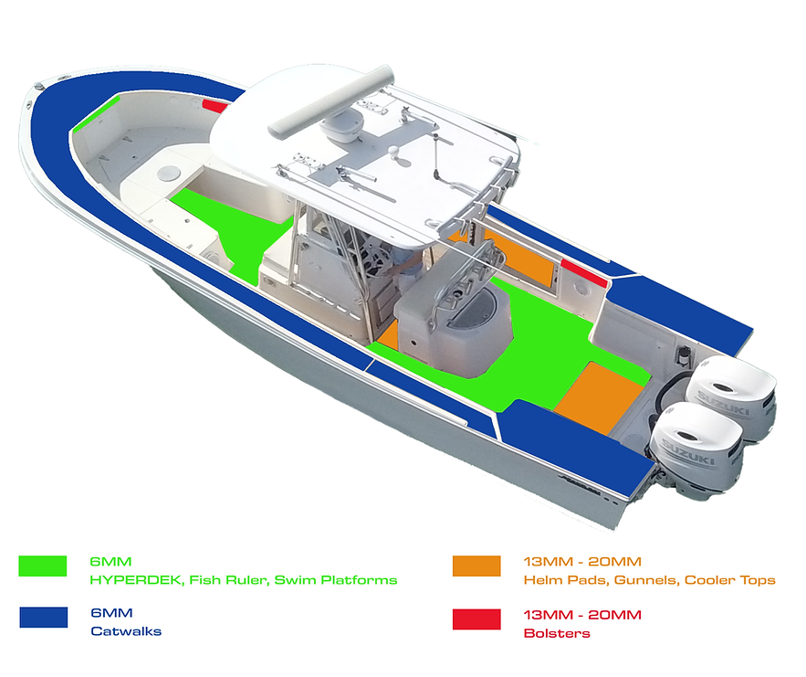 HYPERDEK comes in multiple thicknesses for different applications. Take a quick look at the graphic below to see our recommendations for each application, Keep in mind that stock color availability fluctuates for each thickness.