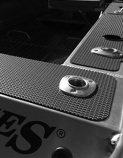 HyperDek Marine Decking is a high density closed cell foam with a PSA adhesive that can directly attach to the boats surface. This makes it the ideal decking material for all boats and personal watercraft. Our in house manufacturing capabilities utilize CNC routing and laser patterning to create unique designs with endless possibilites. Our network of certified templating and installation techs allow us to manage the process from start to finish while giving you the peace of mind, you are in good hands.